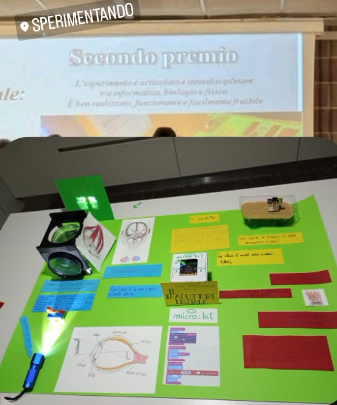 Le alunne e gli alunni hanno approfondito i legami tra scienze naturali e tecnologie digitali, allestendo esperimenti di fisica e biologia e approcciando la programmazione a blocchi. La motivazione della giuria è stata: “L’esperimento è articolato e interdisciplinare tra biologia, informatica e fisica. È ben realizzato, funzionante e facilmente fruibile”.
